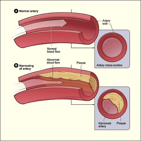 Angina (an-JI-nuh or AN-juh-nuh) is chest pain or discomfort that occurs if an area of your heart muscle doesn't get enough oxygen-rich blood. Angina may feel like pressure or squeezing in your chest. The pain also can occur in your shoulders, arms, neck, jaw, or back. Angina pain may even feel like indigestion.Angina isn't a disease; it's a symptom of an underlying heart problem. Angina usually is a symptom of coronary heart disease (CHD). CHD is the most common type of heart disease in adults. It occurs if a waxy substance called plaque (plak) builds up on the inner walls of your coronary arteries. These arteries carry oxygen-rich blood to your heart.Plaque Buildup in an ArteryFigure A shows a normal artery with normal blood flow. The inset image shows a cross-section of a normal artery. Figure B shows an artery with plaque buildup. The inset image shows a cross-section of an artery with plaque buildup. Plaque narrows and stiffens the coronary arteries. This reduces the flow of oxygen-rich blood to the heart muscle, causing chest pain. Plaque buildup also makes it more likely that blood clots will form in your arteries. Blood clots can partially or completely block blood flow, which can cause a heart attack.